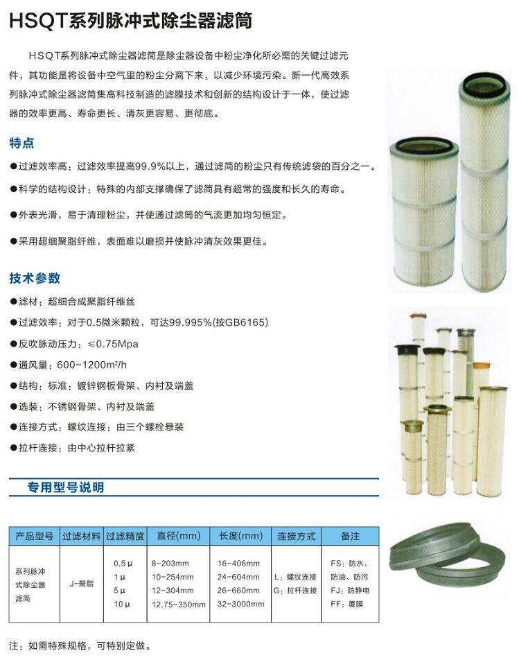 HSQT系列脈沖式除塵器濾筒